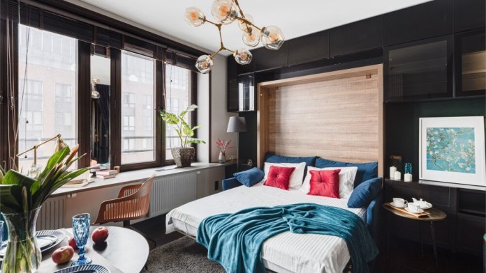 Винтажная студия очаровывает с первого взгляда, настоящая вишенка в нашем арсенале под названием Black Emerald, площадью 35 м², расположенная на 19-м этаже в ЖК Савеловский Сити, в 10-ти минутах от метро Дмитровская, рассчитана на размещение до 2-х гостей и оснащена одной двуспальной кроватью.