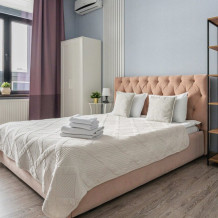 - Большая кровать с удобным матрасом, и постельным бельем из страйп-сатина. Скоростной Wi-Fi и современное SMART TV, позволит расслабиться уютным вечером.