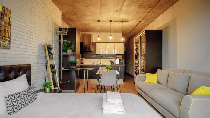 Студия под названием London Loft, площадью 38 м², расположенная на 5-м этаже в ЖК Савеловский Сити, в 10-ти минутах от метро Дмитровская, рассчитана на размещение до 4-х гостей и оснащена одной двуспальной кроватью и диваном.
