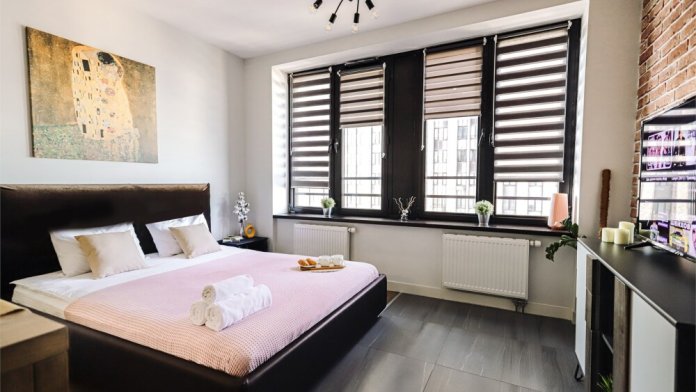 - Большая кровать с удобным матрасом, и постельным бельем из страйп-сатина, подарят прекрасный сон. Скоростной Wi-Fi и современное SMART TV, позволит расслабиться уютным