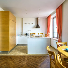 - Современная кухня в полной комплектации. Мини-бар позволит вкусно перекусить в перерыве между делами.