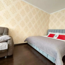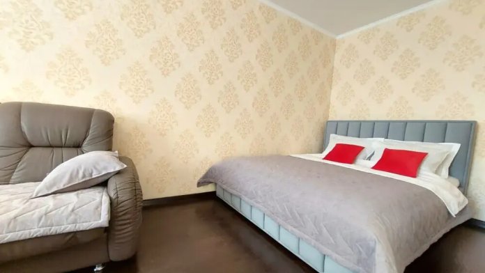 Оснащение: кровать 160*200 с ортопедическим матрацем, диван 140*200, 2 смарт телевизора(50 и 40 дюймов), многоканальное кабельное телевидение, WI-FI, микроволновая печь, кондиционер, стиральная машина, утюг, гладильная доска, фен. Фото соответствует. Замечательный вариант для приятного отдыха. Много парковочных мест.