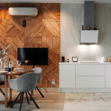 - Стильная кухня в полной комплектации, будто приглашает приготовить что-то вкусное и провести время за уютным ужином. Мини-бар позволит вкусно перекусить в перерыве между делами.