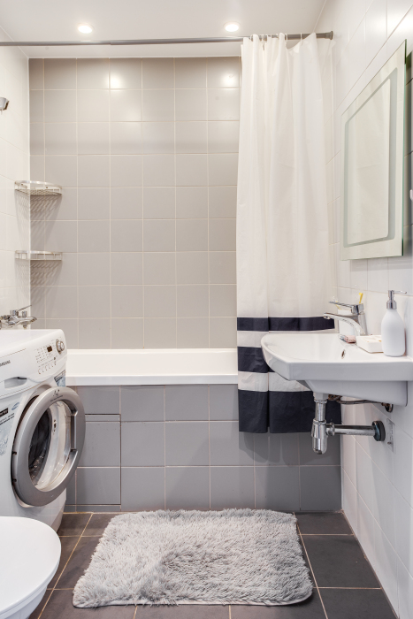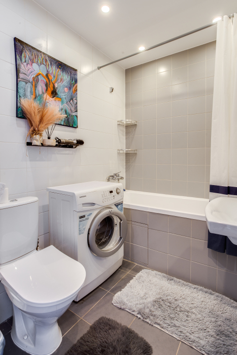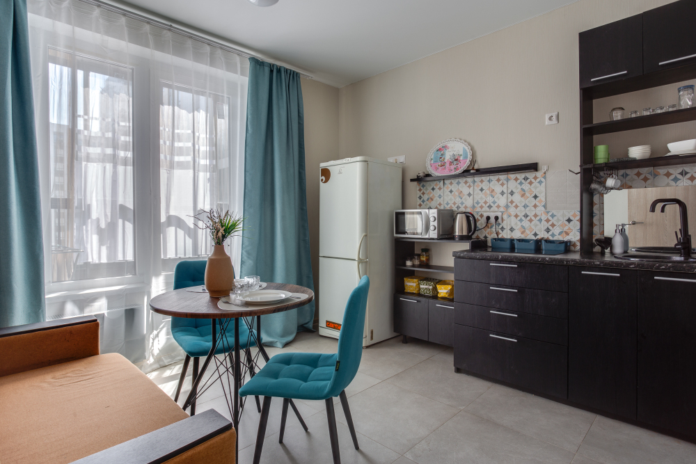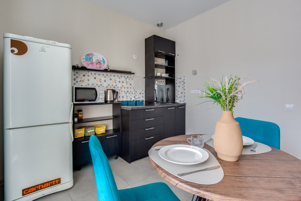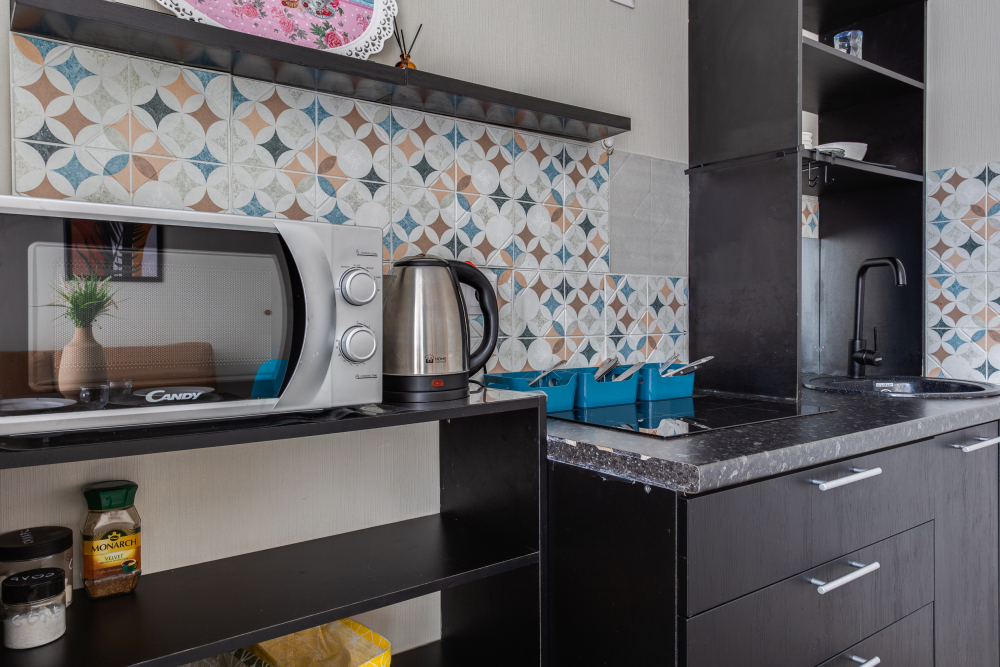 - бытовую технику (большой холодильник, электрочайник, варочная панель, микроволновка, стиральная машина, фен, телевизор, беспроводной доступ к интернету Wi-Fi);