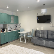 Студия оснащена мебелью и техникой необходимой для проживания. Бесплатный WIFI.Фото соответствует на 100%. Бесплатная парковка возле дома.