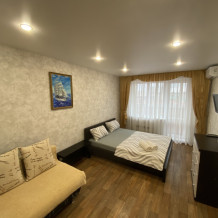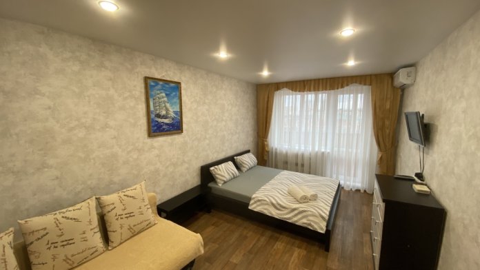 Квартира оснащена бытовой техникой, мебелью необходимой для проживания. Совмещённый санузел. Бесплатный WI-FI. Кабельное телевидение. Фото соответствует на 100%.