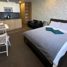 Курортный городок, кафе, магазины, всё рядом. До моря 370 м. От аэропорта 15 минут на машине, от ж/д вокзала Адлер 10 минут. В шаговой доступности ж/д станция «Известия».