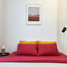 В квартире есть: двуспальная кровать (160х200), диван, кухня со всем необходимым (холодильник, варочная панель, духовой шкаф, микроволновая печь, чайник, а так же посуда и приборы), стиральная машина, фен, утюг, сушилка для одежды, Smart TV (онлайн-кинотеатры, YouTube) и высокоскоростной Wi-Fi, шкаф, шампунь, гель для душа, жидкое мыло, стиральный порошок. На каждого гостя предусмотрено по 2 полотенца. Замена белья и полотенец производится при бронировании свыше 7 суток бесплатно. В иных случаях за дополнительную плату.
