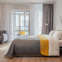 В квартире: двуспальная кровать (160х200), кресло-кровать (120х200), кухня со всем необходимым (холодильник, варочная панель, микроволновая печь, чайник, а так же посуда и приборы), стиральная машина, фен, утюг, сушилка для одежды, Smart TV (онлайн-кинотеатры, YouTube) и высокоскоростной Wi-Fi, шкаф, шампунь, гель для душа, жидкое мыло, стиральный порошок. На каждого гостя предусмотрено по 2 полотенца. Замена белья и полотенец производится при бронировании свыше 7 суток бесплатно. В иных случаях за дополнительную плату.