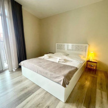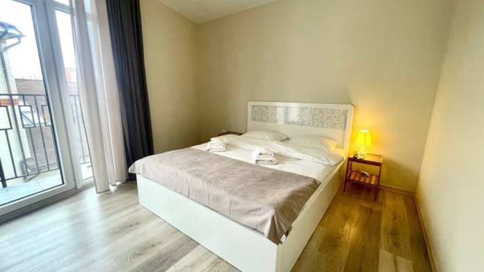 Квартира расположена в 5 минутах ходьбы до платного пляжа и бассейна. Там же находится новый банный комплекс, оснащенный всем необходимым для прекрасного отдыха: шезлонги, зонтики, детская площадка, различные кафешки и ресторанчики.