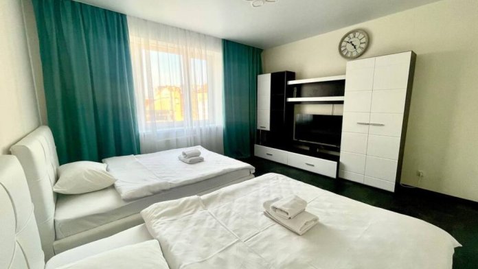Также, в квартире есть стиральная машина, фен, утюг, 2 телевизора, белоснежное постельное белье, полотенца, тапочки, гигиенические принадлежности, включая зубную щетку и пасту. Проведен бесплатный Wi-Fi.