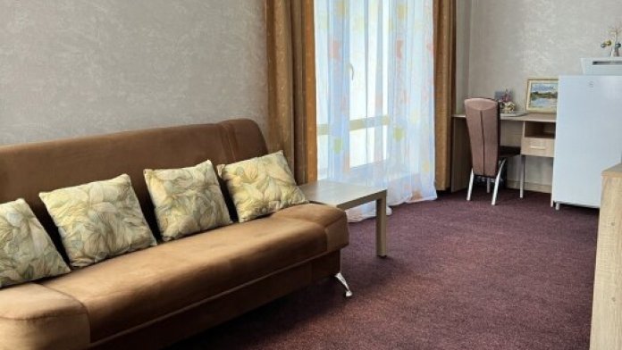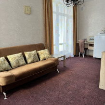 Наш гостевой дом располагает 12 номерами категории «Люкс»: двухместный номер с одной двуспальной кроватью и диваном (до 3 человек).