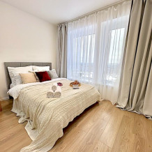 В квартире есть все необходимое для проживания 2-х человек: широкая двуспальная кровать с ортопедическим матрасом (160х200),плотные шторы портьеры блекаут для вашего комфортного сна, вместительный шкаф для одежды, Wi-Fi, Smart TV, гладильная доска, утюг, сушилка, свежее качественное постельное белье, комплект мягких полотенец.