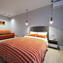 Уютная, комфортабельная однокомнатная квартира в новом элитном доме в самом центре города. В квартире сделан новый шикарный ремонт с использованием дорогих и качественных материалов. В квартире имеется все необходимое для беззаботного проживания: ЖК телевизоры в комнате и на кухне, кабельное телевидение более 150 каналов, кондиционер, интернет Wi-Fi, хорошая гладильная доска и утюг, фен, сушилка для одежды, постельные принадлежности, полотенца, средства гигиены. В комнате стоит двуспальная кровать с новым дорогим матрасом премиум класса, раскладывающийся диванчик. Кухня сделана в современном стиле, оснащена современной новой бытовой техникой (керамическая варочная плита, микроволновая печь, холодильник, чайник), стол, мягкие стулья, вся необходимая новая посуда на несколько персон, фужеры, бокалы и другие приятные мелочи. Санузел совмещен, установлен современный тропический душ, удобный унитаз, новая качественная сантехника, стиральная машина автомат. Окно с лоджией выходят во двор, что дает возможность спокойно открывать окна. Лоджия обшита евровагонкой.