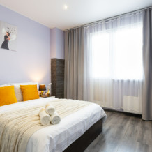 В квартире есть все необходимое для проживания 4-х человек: широкая двуспальная кровать с ортопедический матрасом с независимыми пружинами (140х200), двуспальный диван (160х200), возможно размещение доп. раскладного места (80х200), плотные шторы портьеры блекаут для Вашего комфортного сна, вместительный шкаф для одежды, Wi-Fi, Smart TV, гладильная доска, утюг, сушилка, свежее качественное постельное белье, комплект мягких полотенец.