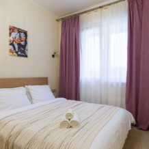 В квартире есть все необходимое для проживания 2-х человек: широкая двуспальная кровать с ортопедический матрасом с независимыми пружинами (160х200), плотные шторы портьеры блекаут для Вашего комфортного сна, вместительный шкаф для одежды, Wi-Fi, Smart TV, гладильная доска, утюг, сушилка, свежее качественное постельное белье, комплект мягких полотенец.