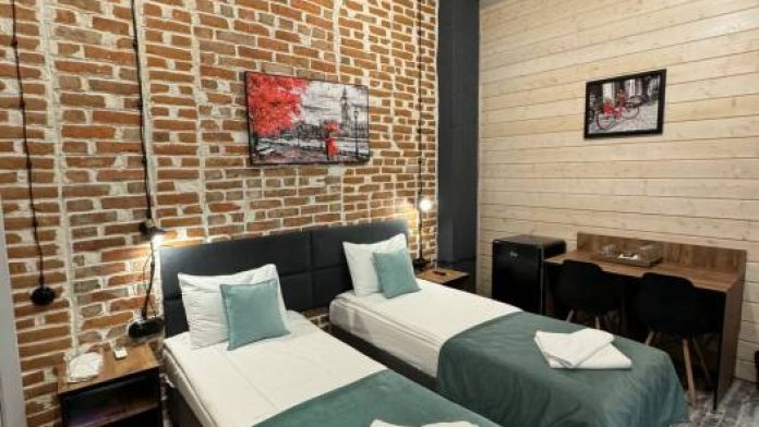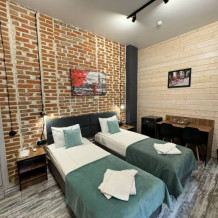 Стандартный однокомнатный номер оформлен в современном стиле, с лофт изюминкой, интерьер выполнен в светлых тонах и со всем необходимым оборудованием для комфортного пребывания гостей. Номер оснащен удобными односпальными кроватями, прикроватными тумбочками, столиком, стульями, кондиционером, холодильником, постельным бельём, полотенцами, мини парфюмерией.
