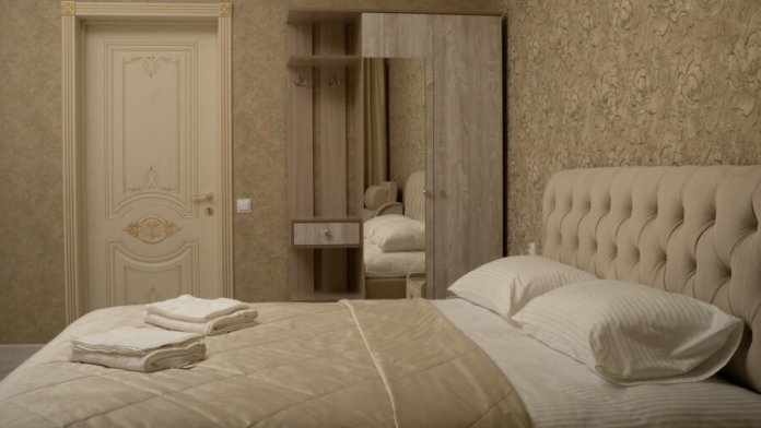 Двухкомнатный номер с двумя двуспальными кроватями и двумя дополнительными спальными местами. Номер оснащён телевизором, холодильником, феном, современным сан.узлом. В ванной комнате личные принадлежности - тапочки, халат, полотенца, шампуни. Для вас мы приобрели качественные матрасы средней жесткости. Надеемся, что это позволит классно отдохнуть!