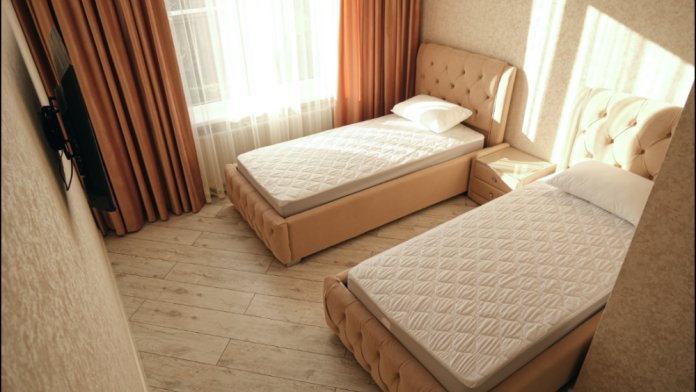 Двухместный номер с двумя полуторными кроватями. Оснащён ТВ, феном, современным санузлом.