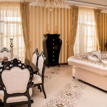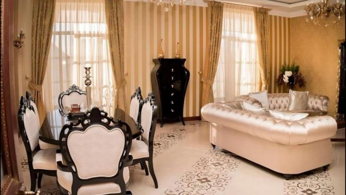 Номер состоит из большой гостиной, где имеется зона отдыха с большими диванами, смарт-телевизором и обеденной зоной, большой спальной комнатой с кроватью king-size, ванной комнатой со всему необходимыми принадлежностями (полотенца, зубные наборы, гели, шампуни-кондиционеры, тапочки, туалетная бумага). Также прихожая оснащена большим платяным шкафом, где можно разложить все личные вещи, и холодильником с морозильной камерой для хранения продуктов.