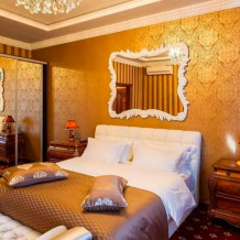 В номере имеются все условия для комфортного проживания (плазменный телевизор, холодильник, кондиционер). Ванная комната оснащена всем необходимым (тапочки, халаты, полотенца, мыло, шампуни, гели для душа).
