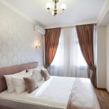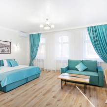 Спальня оборудована удобной кроватью, прикроватными тумбочками, а ее интерьер дополняет мягкое освещение и стильные элементы декора. Гостиная оснащена мягким диваном, креслом, смарт-ТВ и имеет выход на свой большой балкон, где Вы сможете насладиться утренним кофе или вечерним закатом, отдыхая после насыщенного дня.