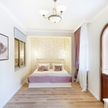 Спальня оборудована удобной кроватью, прикроватными тумбочками, смарт-ТВ, туалетным столиком и мягким пуфом. А ее интерьер дополняет мягкое освещение и стильные элементы декора. Спальня имеет выход на свой балкон, где Вы сможете насладиться утренним кофе или вечерним закатом, отдыхая после насыщенного дня.