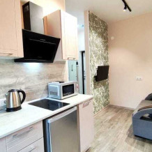 Гостиная: диван двуспальный, полностью оборудованная кухня. Все новое. Берётся залог для сохранности имущества (возвратный при выезде).