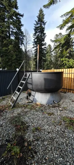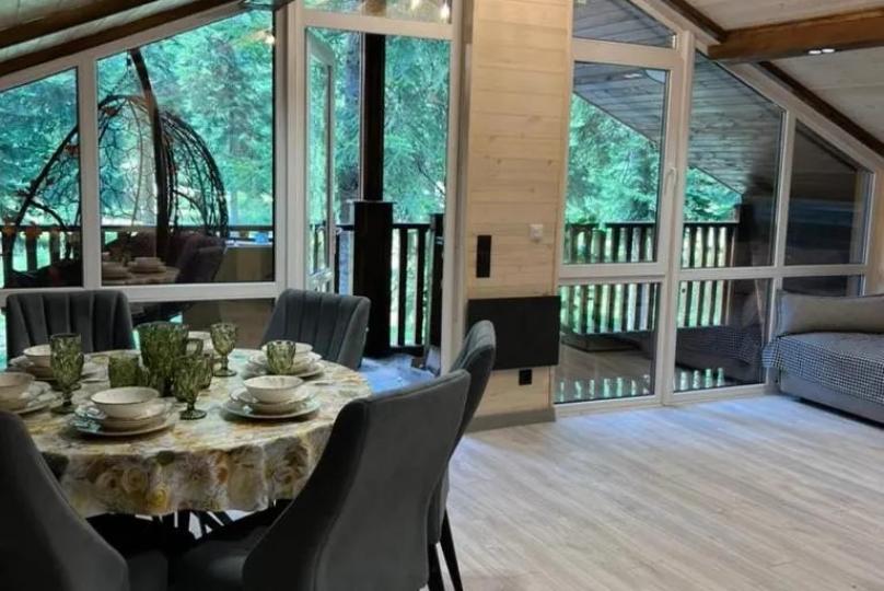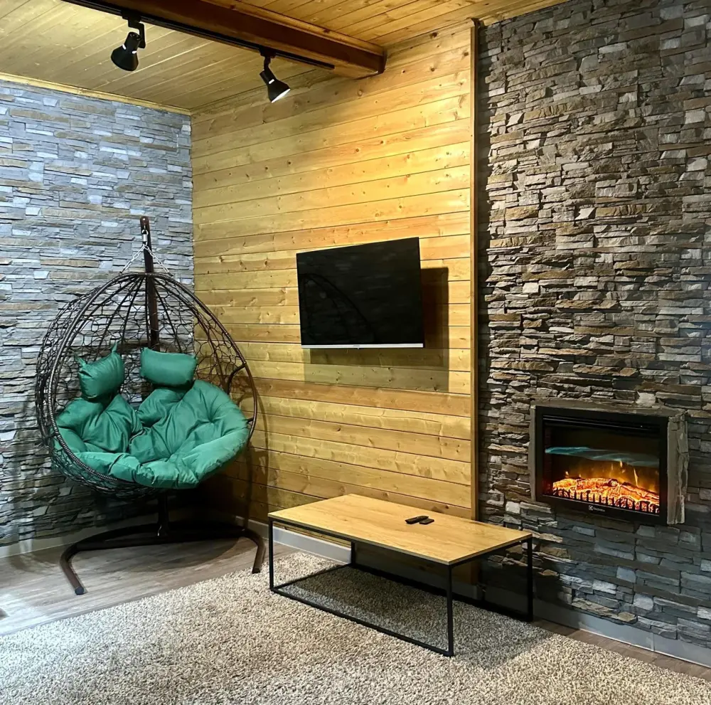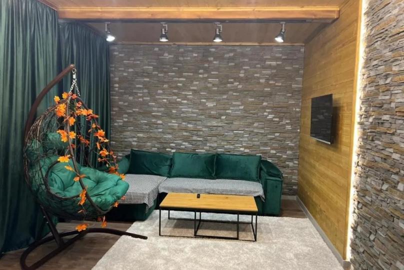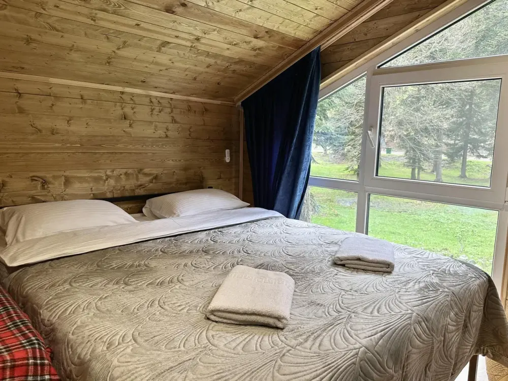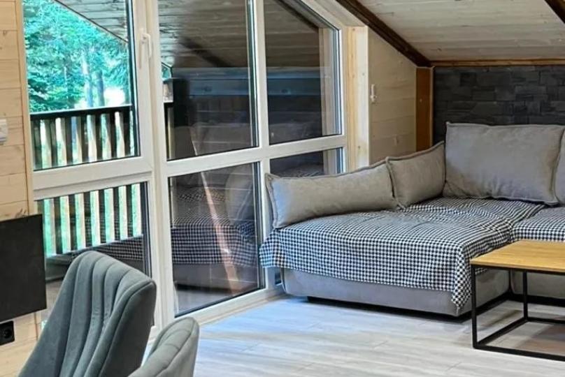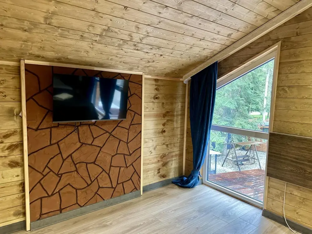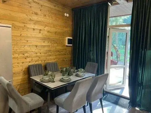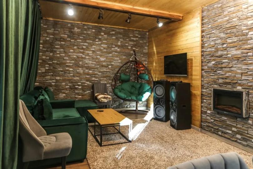 На территории: детская площадка, батут, очаговая зона для уютных вечеров, баня на дровах, мангальная зона и беседка у каждого домика (шампуры и казан есть), парковка.