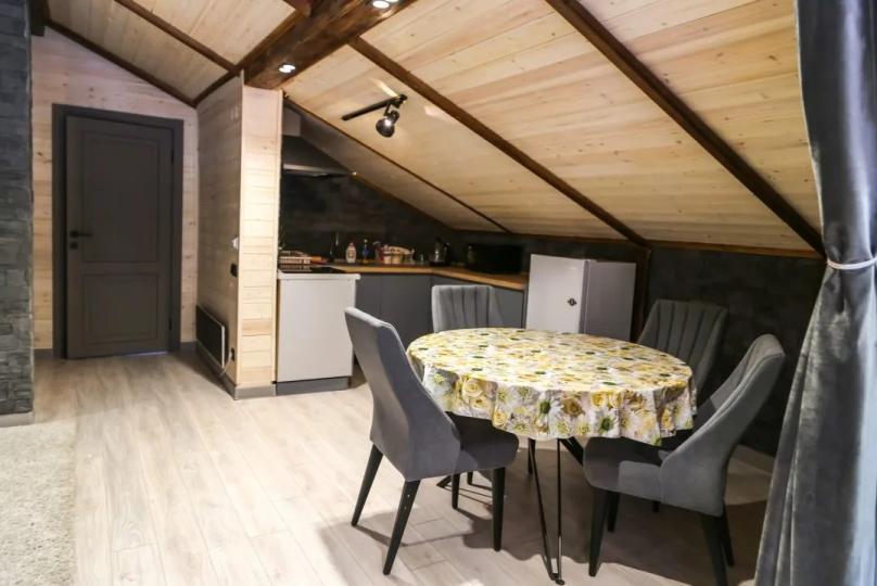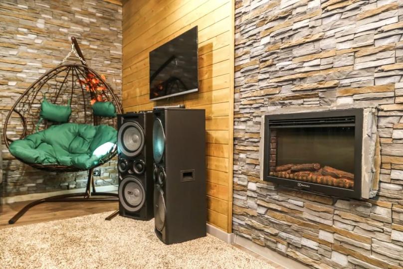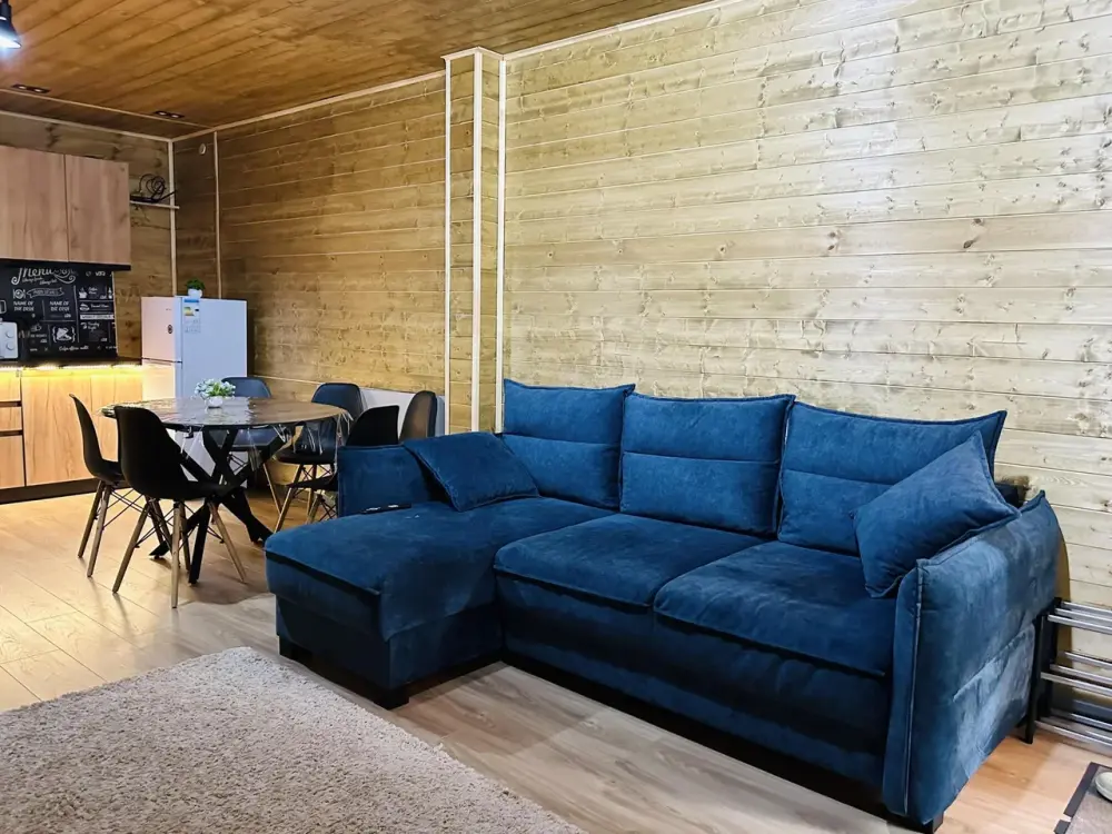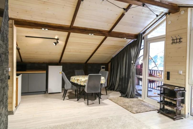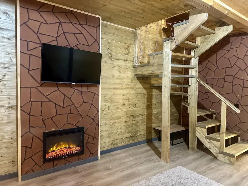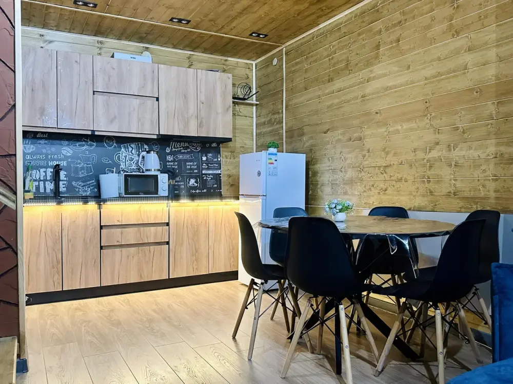 1 этаж: кухня-гостиная, изолированные 2 спальни, санузел. 2 этаж: кухня-гостиная, изолированные 2 спальни, санузел. Кухня: холодильник, микроволновая печь, плита, посуда, принадлежности для приготовления, стол, стулья. На 1 этаже: большой стол, чтобы разместить всю компанию. Гостиная: двуспальный диван, камин, телевизор, Wi-Fi. На каждом этаже свой санузел.