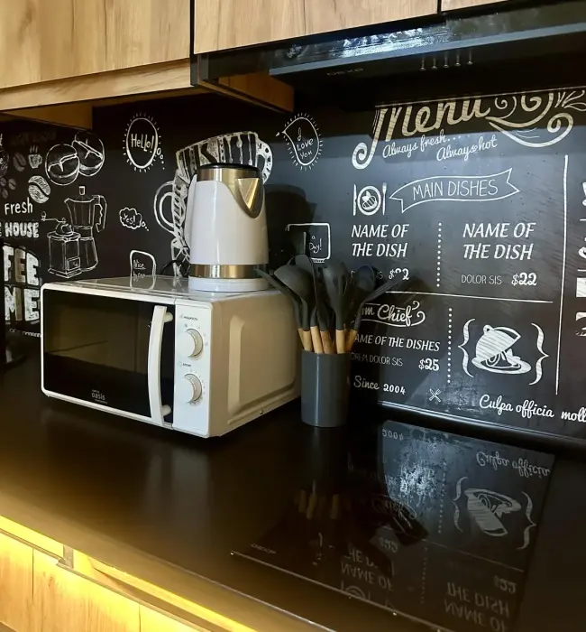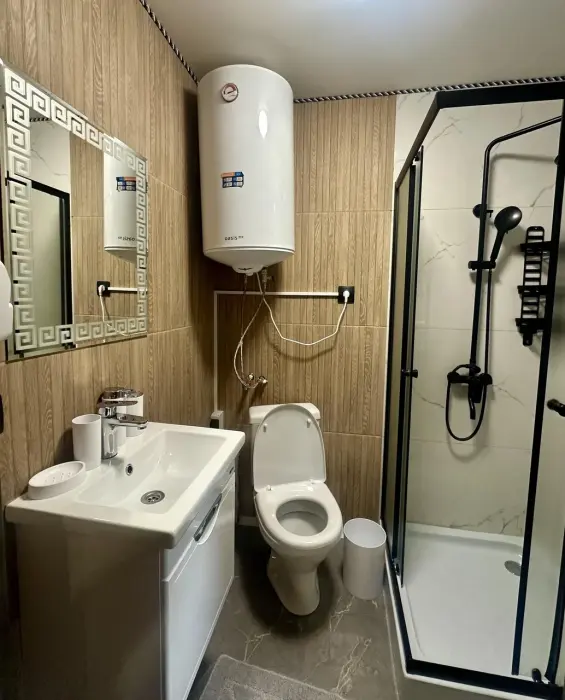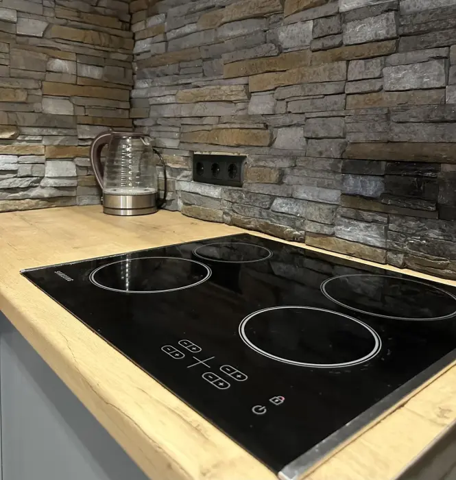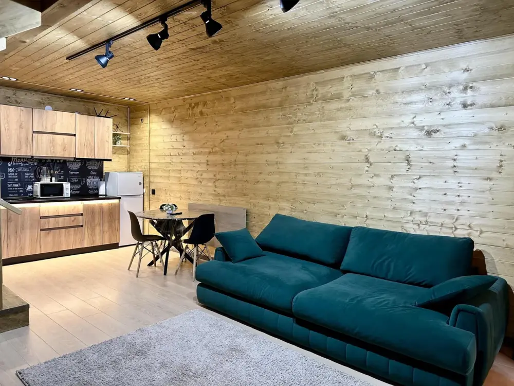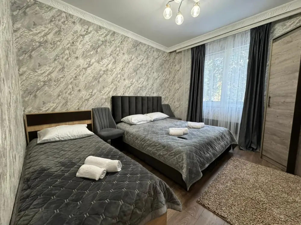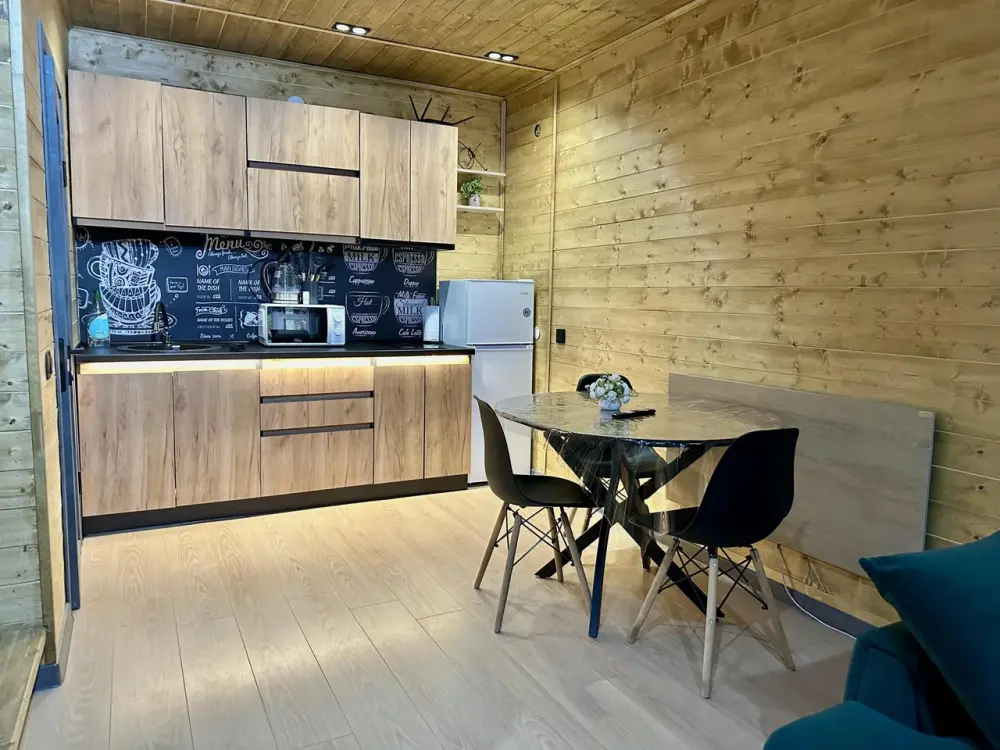 1 этаж: кухня-гостиная, изолированные 2 спальни, санузел. 2 этаж: кухня-гостиная, изолированные 2 спальни, санузел. Кухня: холодильник, микроволновая печь, плита, посуда, принадлежности для приготовления, стол, стулья. На 1 этаже: большой стол, чтобы разместить всю компанию. Гостиная: двуспальный диван, камин, телевизор, Wi-Fi. На каждом этаже свой санузел.