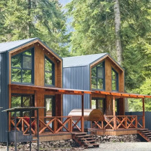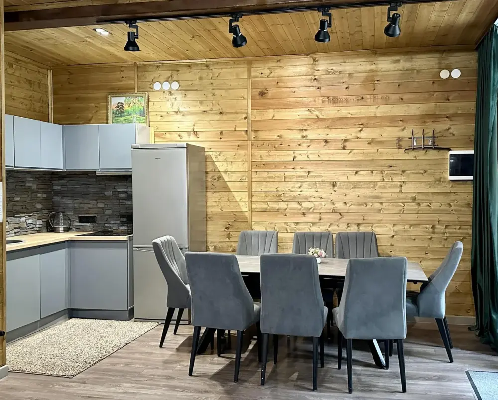 Мы предлагаем 4 коттеджа Барнхаус 88м2. Каждый коттедж рассчитан на проживание 2-6 человек: кухня-гостиная, изолированные 2 спальни, 2 санузла.