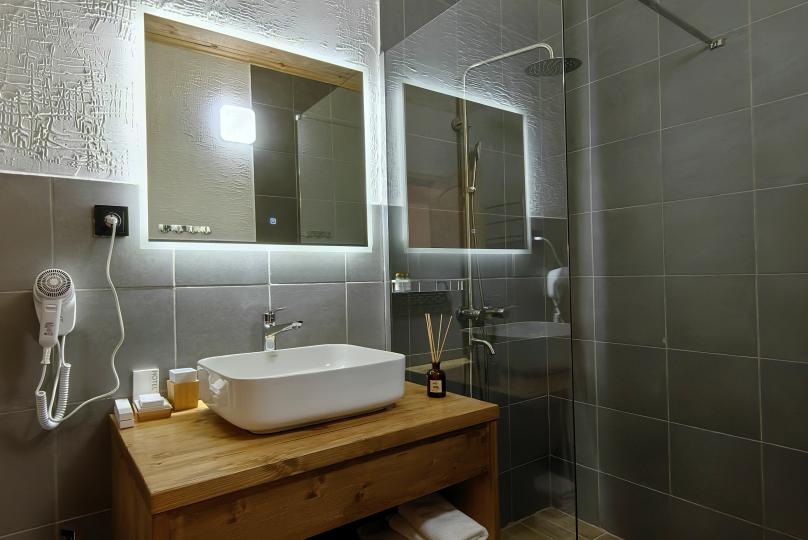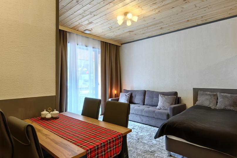 Коттедж расположен на лицевой стороне базы отдыха, с отличным видом и личным двориком с мангальной зоной. Здесь гости смогут ощутить теплоту и уют швейцарского домика в горах Архыза. Каждый коттедж оснащен всем необходимым до мелочей, удобные матрасы, лучшее постельное белье, собственное газовое отопление от персонального котла, персональная кухня оснащенная всем необходимым, балкон с прекрасным видом и мебелью и многое другое.