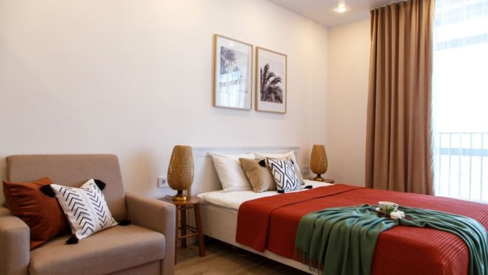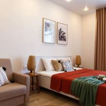 Стильная студия комфорт-класса, выполненная в стиле острова Бали. Вместимость до 3-х гостей. В квартире есть все необходимое для отдыха всей семьей: 2-спальная кровать king-size и раскладывающееся кресло, кухня с плитой, холодильником, чайником и всем необходимым, бесплатный Wi-Fi и ЖК телевизор (SMART TV), стиральная машина и все для стирки и глажки, фен, белоснежное постельное белье, полотенца, шампунь, гель для душа, зубные наборы, тапочки, кондиционер (сплит-система).