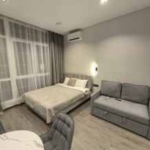 В апартаментах электронные замки, есть все необходимое для жизни: стиральная машина, холодильник, плита, микроволновая печь с грилем, сейф, вся необходимая посуда, ТВ, сплит-система.
