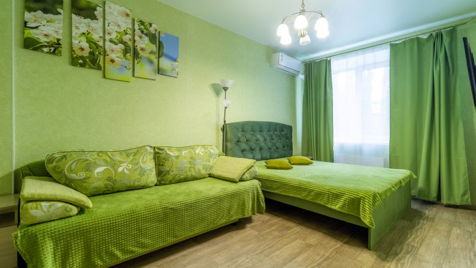 В одной комнате 2-спальная кровать и 2-спальный диван.