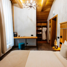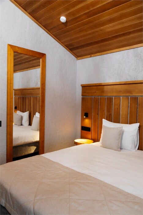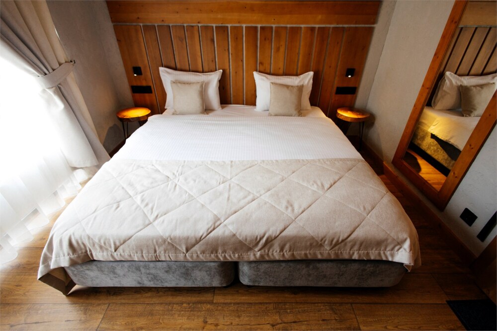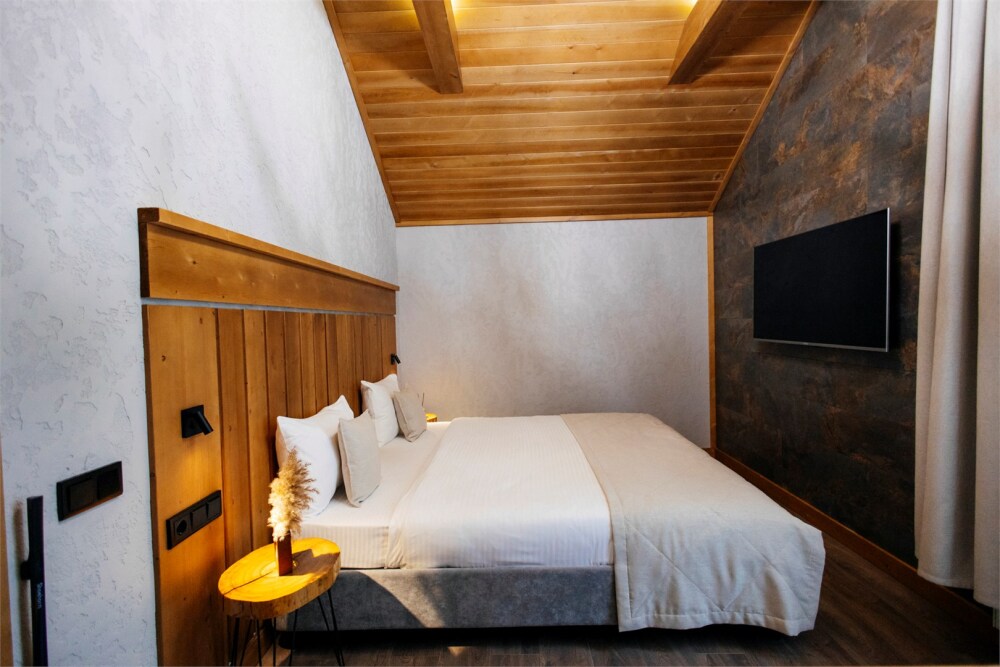 Для размещения гостей предлагаются комфортабельные номера в основном здании, а также панорамный дом и 3 коттеджа. Все номера выполнены в светлом лаконичном дизайне и оснащены удобной мебелью, телевизором, сейфом, Wi-Fi, индивидуальной ванной комнатой с душем, теплым полом и феном. Проживающие в номерах могут воспользоваться кухонной зоне общего пользования. В коттеджах имеется оборудованная кухня со всем необходимым для приготовления пищи. Для гостей предоставляются тапочки, халаты, набор полотенец, туалетно-косметические принадлежности. Из окон открываются живописные виды на горы.
