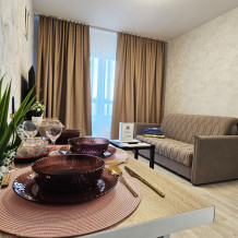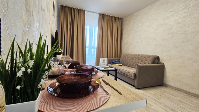 В этой квартире Вы сможете спокойно и комфортно поработать или просто отдохнуть после прогулок по городу и посещения Аквапарка и Зоопарка, Торговых Центров «АУРА» или «Галерея», да и просто пообщаться с близким человеком! В Вашем распоряжении будет все бесплатно: Wi-Fi, чай, кофе, шоколад, конфеты, индивидуальные средства гигиены, чистый комплект постельного белья и полотенец, телевизор Smart ТВ на 150 каналов, вся необходимая бытовая техника, застекленный балкон.
