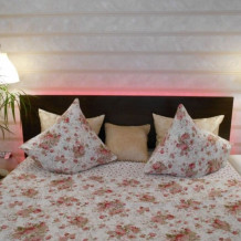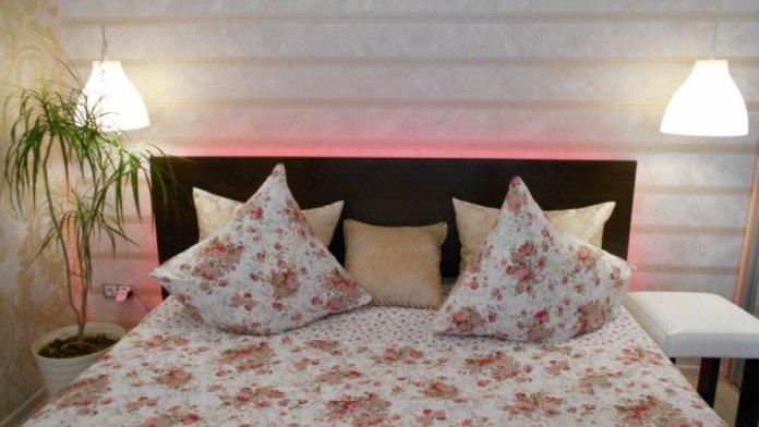 - интересное освещение - светодиодная подсветка изголовья кровати и барной стойки, точечные светильники, управляемое с пульта ДУ.