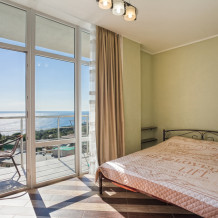 Включает в себя: кухня -студио, двухспальная кровать, двухспальный диван, шкаф, ТВ и Wi-Fi, кондиционер, посуда, электрочайник, электроплита, холодильник, микроволновая печь, постель, полотенце, санузел с душевой кабиной, балкон с видом на море.
