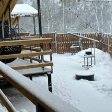Ухоженная территория, мангальная зона для вкусных мясных вечеров, охраняемая парковка и конечно же невероятные виды на заснеженные вершины и бескрайнее небо.