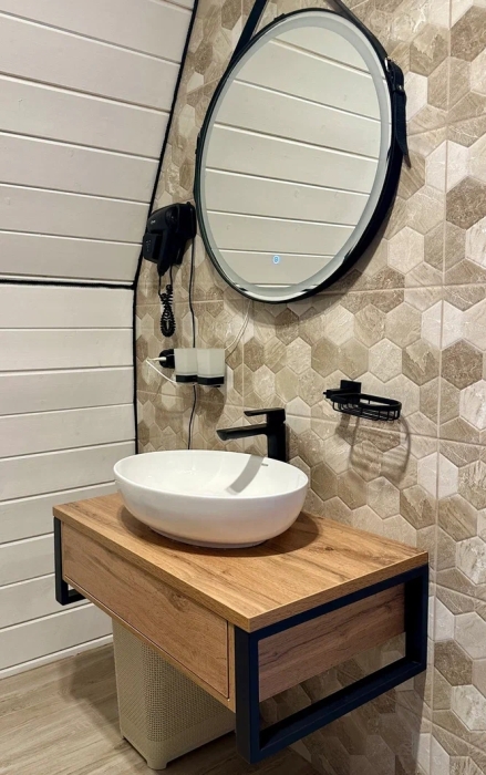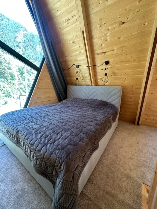 Каждый дом a-frame рассчитан на проживание до 4-х человек, имеет кухню-гостиную, спальню на втором этаже, санузел.