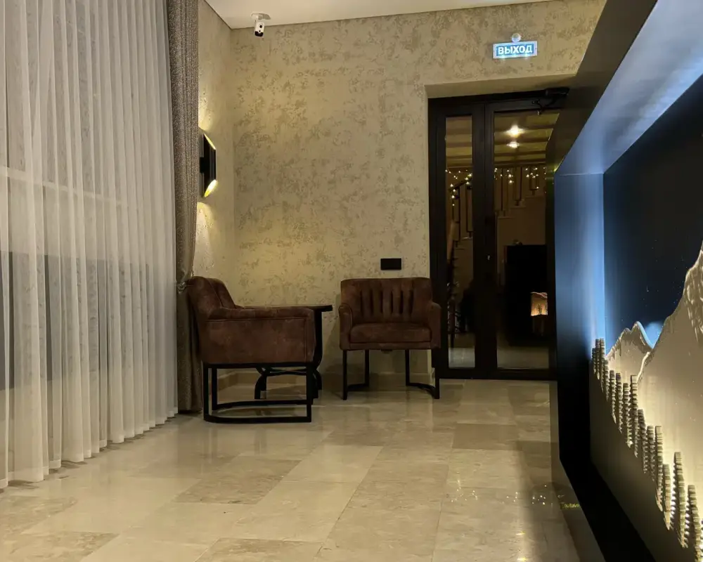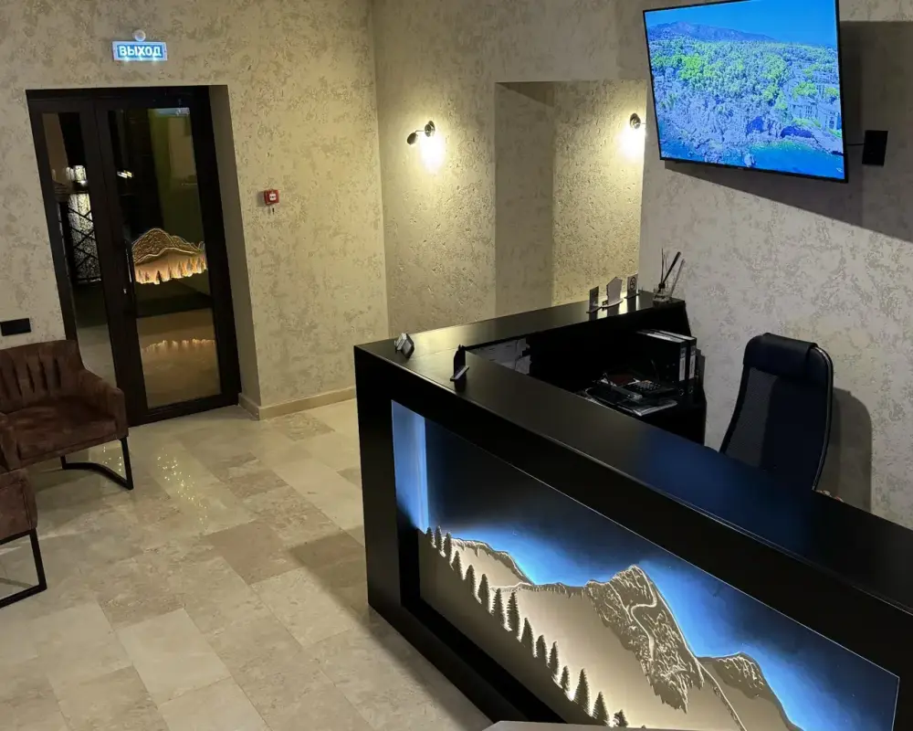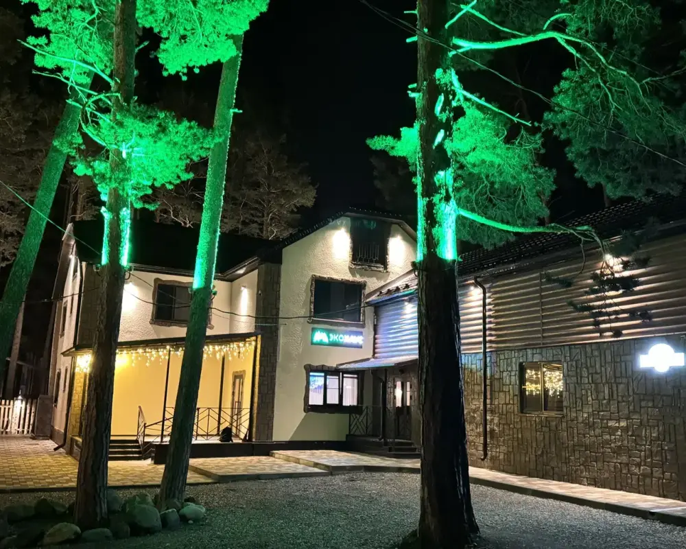 Отель «Эко Хаус» расположен в тихом сосновом бору в поселке Эльбрус, вдали от курортной суеты. При этом до канатных дорог и горнолыжных трасс всего 10 минут на машине. В двух шагах – красивейшие экотропы и туристические маршруты.