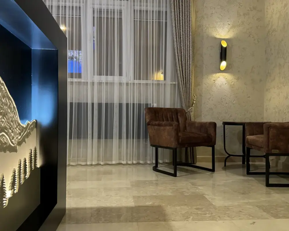 В отеле 10 номеров: от уютных «Комфортов» до просторных «Двухуровневых Апартаментов» и «Двухэтажного коттеджа». В каждом из них есть все необходимое для комфортного проживания.Апартаменты и Коттедж оборудованы личной кухней, где есть плита, холодильник и посуда. В ванной комнате: душевая кабина, раковина, зеркало с подсветкой, унитаз, гигиенический душ, гигиенические средства (шампунь, гель для душа, жидкое мыло), фен, полотенцесушитель.