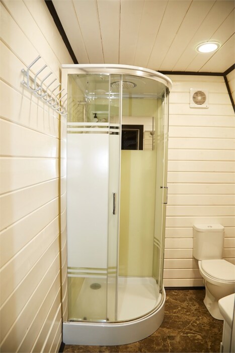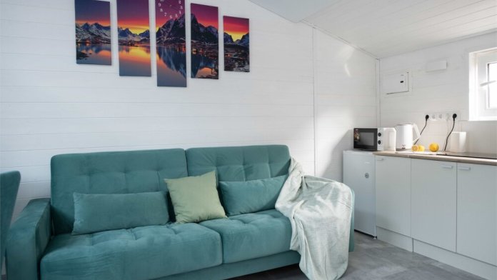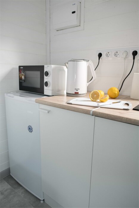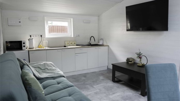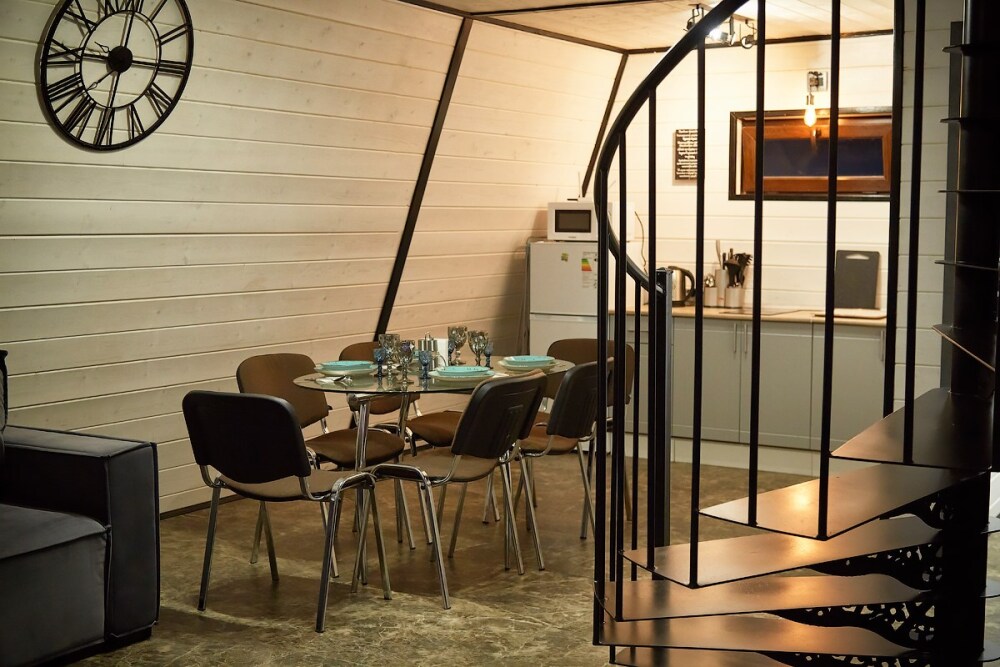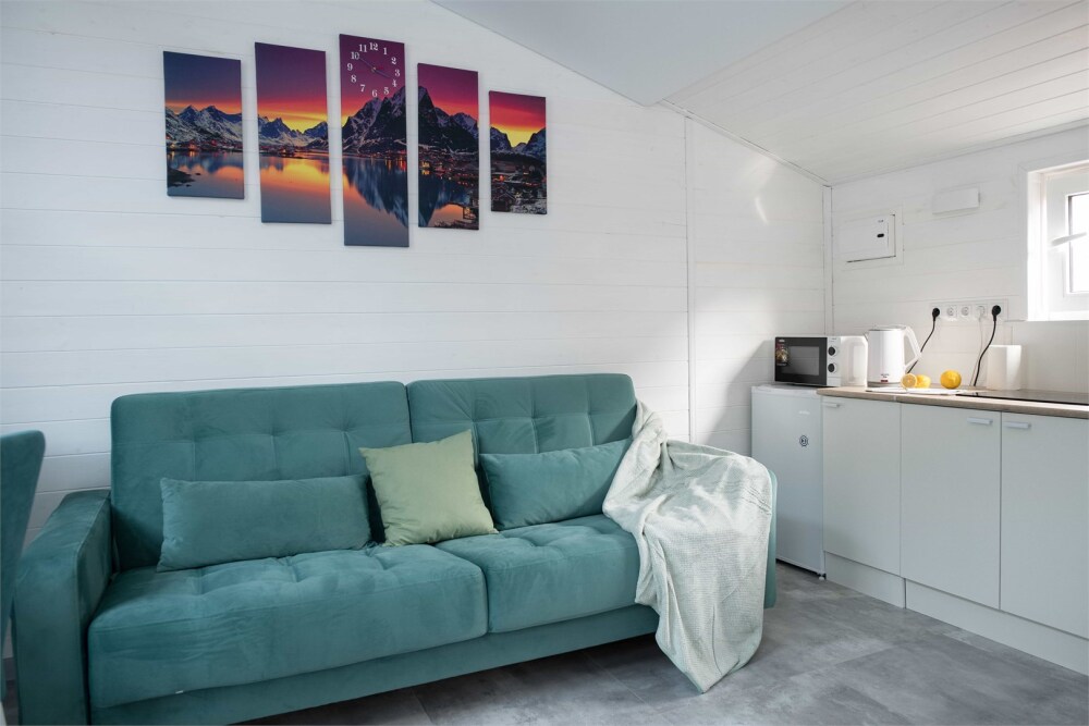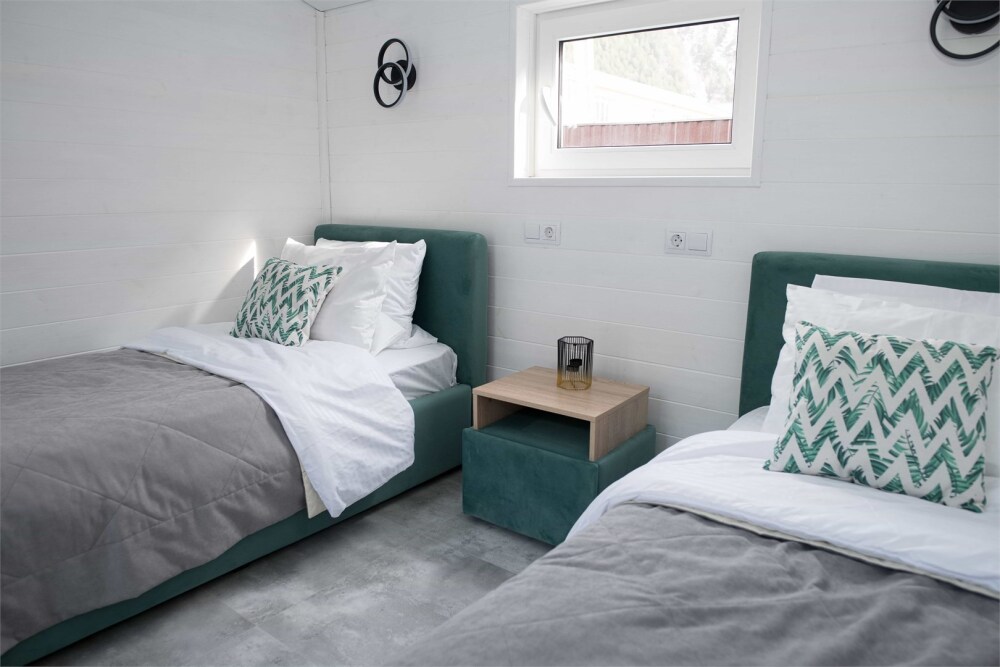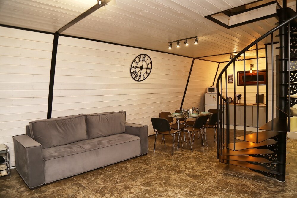 Домик 40 кв.м, две комнаты, санузел, в гостиной полноценная кухня. В каждом домике имеется всё для комфортного отдыха, холодильник, телевизор, WiFi, микроволновая печь, варочная панель, электрочайник, большой телевизор