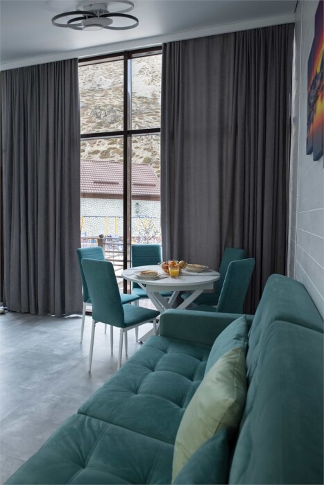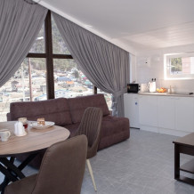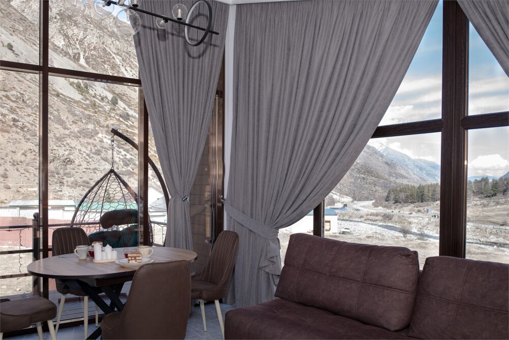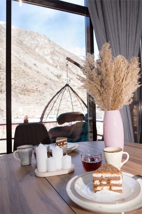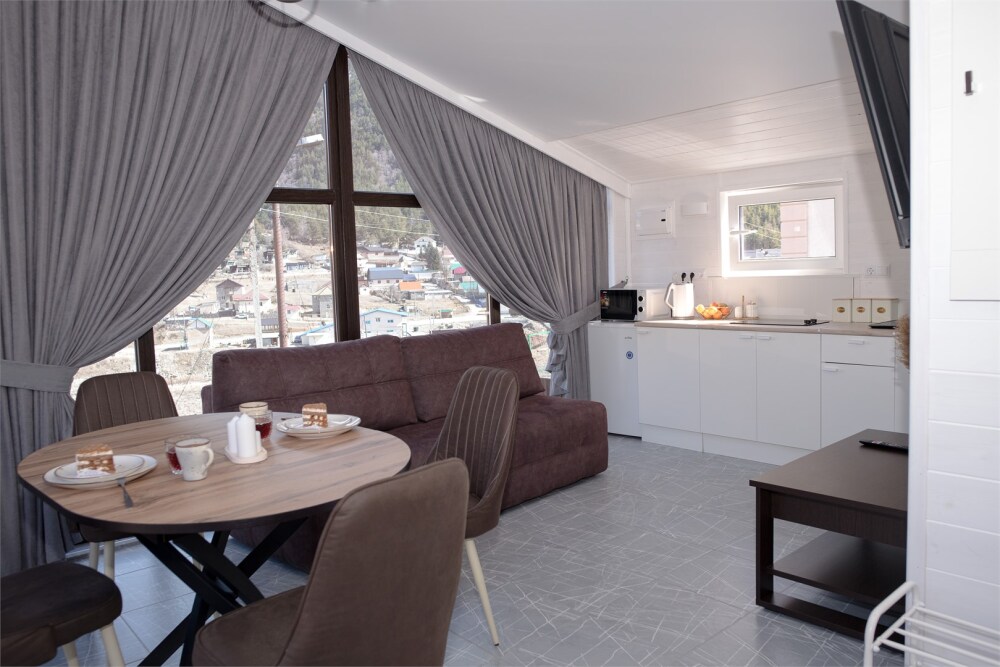 Лофт коттеджи: Эти стильные одноэтажные коттеджи с панорамными окнами позволяют наслаждаться видом на горы прямо из вашей спальни. Каждый коттедж оснащен современной кухней, ванной комнатой с душевой кабиной и всеми необходимыми условиями