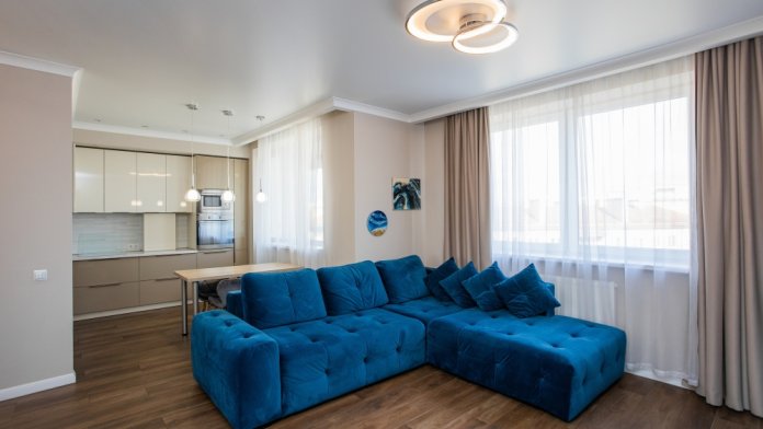 Blue Sky - cтильная современная евродвушка в новом ЖК. Находится в 10 минутах ходьбы от ТРЦ Гиант, рядом улицы Ялтинская, Аксакова, Московский проспект, Денисова, Флотская. Расстояние до железнодорожного вокзала Калининград Южный составляет 8 км, Калининград Северный 9 км, а до международного аэропорта Храброво 15 км. Расстояние до курортных городов Балтийского моря до Зеленоградска составляет 23 км, до Светлогорска 35 км.