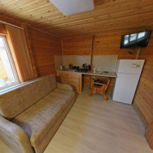 Благоустроенные двухкомнатные дома на 7 спальных мест. В каждом домике кухня, санузел, умывальник, душ с горячей и холодной водой. Дома укомплектованы кондиционером, холодильником, телевизором, микроволновой печью, газовой плиткой, постельное белье, чайник, кухонные принадлежности.