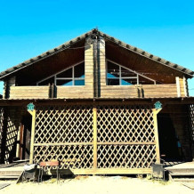 Двухэтажные, благоустроенные дома на 8 спальных мест. Санузел в каждом доме кухня, туалет, умывальник, душ с горячей и холодной водой. Дома укомплектованы кондиционером, холодильником, телевизором на каждом этаже, газовой печью, постельное белье, чайник, кухонные принадлежности.