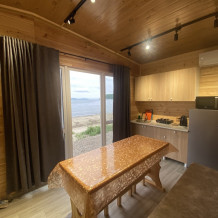 Отдельно стоящие, комфортные, благоустроенные 4-местные домики, расположенные в 25 метрах от моря. В каждом домике летняя кухня, туалет, умывальник, душ с горячей и холодной водой. Дома укомплектованы холодильником, телевизором, газовой печью, одной двуспальной и одной двухъярусной кроватью, постельное белье, чайник, кухонные принадлежности.